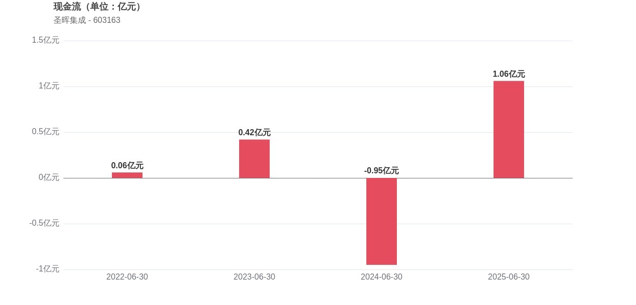 在经营稳健性方面,圣晖集成面临资本结构调整压力,存货周转天数为0.99天,较2024年上半年下降了0.81%,表明运营效率有所提升。经营活动产生的现金流净额为1.06亿元,相比2024年同期的-0.95亿元实现由负转正,显示出现金流状况明显改善。此外,2025年上半年的资产负债率为49.71%,同比增长了6.17个百分点,这意味着公司负债水平有所上升。