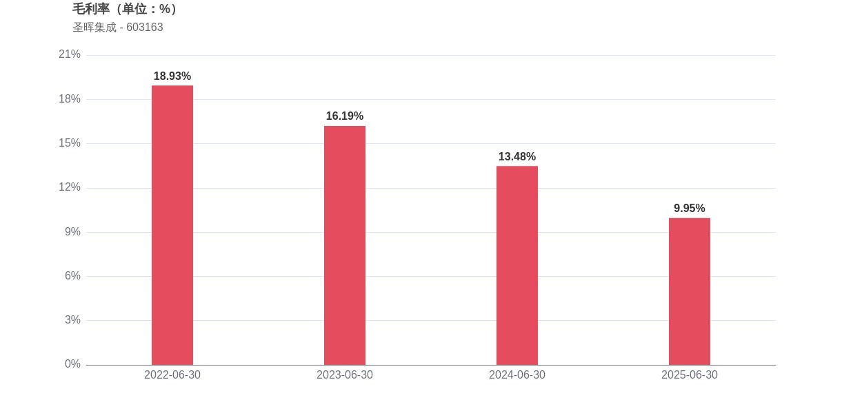 在2025年上半年,圣晖集成的经营业绩呈现收入高增长但盈利能力承压的特征,实现营业收入12.95亿元,同比增长39.04%,归母净利润0.62亿元,同比增长9.63%。