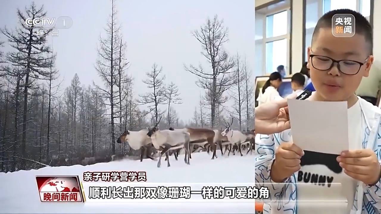 亲子研学营学员:亲爱的驯鹿们,希望你们每天都能开心,吃到美味的苔藓,也可以茁壮成长,顺利长出那双像珊瑚一样可爱的角,无忧无虑地成长吧。